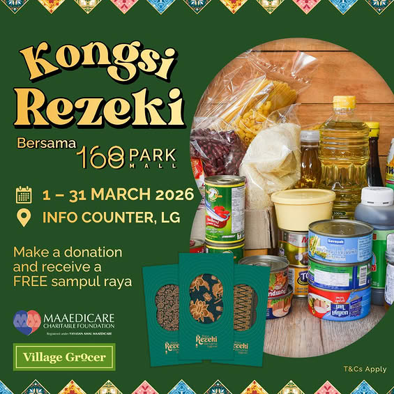 “Raya adalah masa untuk berkongsi dan bersedekah. Menerusi ‘Kongsi Rezeki’, kami memudahkan komuniti untuk menyumbang barangan keperluan asas seperti beras, minyak masak, dan tepung yang dibeli di Village Grocer 168 Park Mall ke dalam tong pengumpulan yang disediakan di Aras LG,” katanya ketika ditemui selepas majlis pelancaran kempen, hari ini.